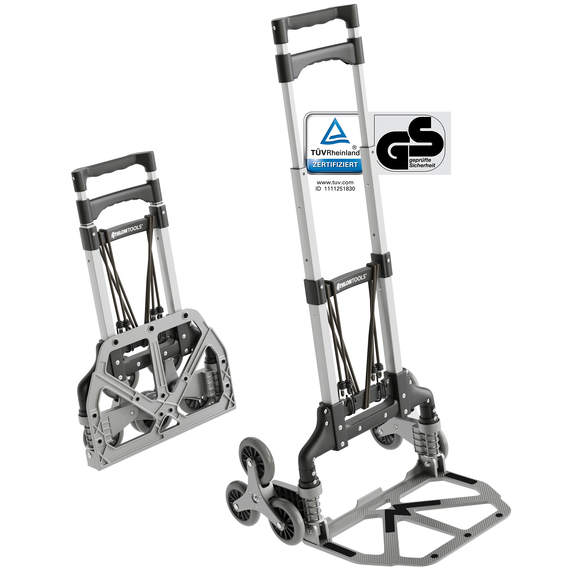 WAS SIE BEKOMMEN: Eine fertig montierte Aluminium Treppen-Sackkarre, zwei Expanderseile zur Ladungssicherung, eine digitale Rechnung und einen freundlichen, kulanten Kundenservice.